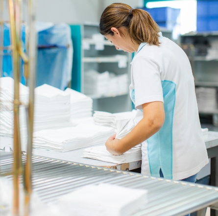 - Livraison conformément à la cadence prédéfinie : le linge est prêt à l’emploi avec un flux de service continu.